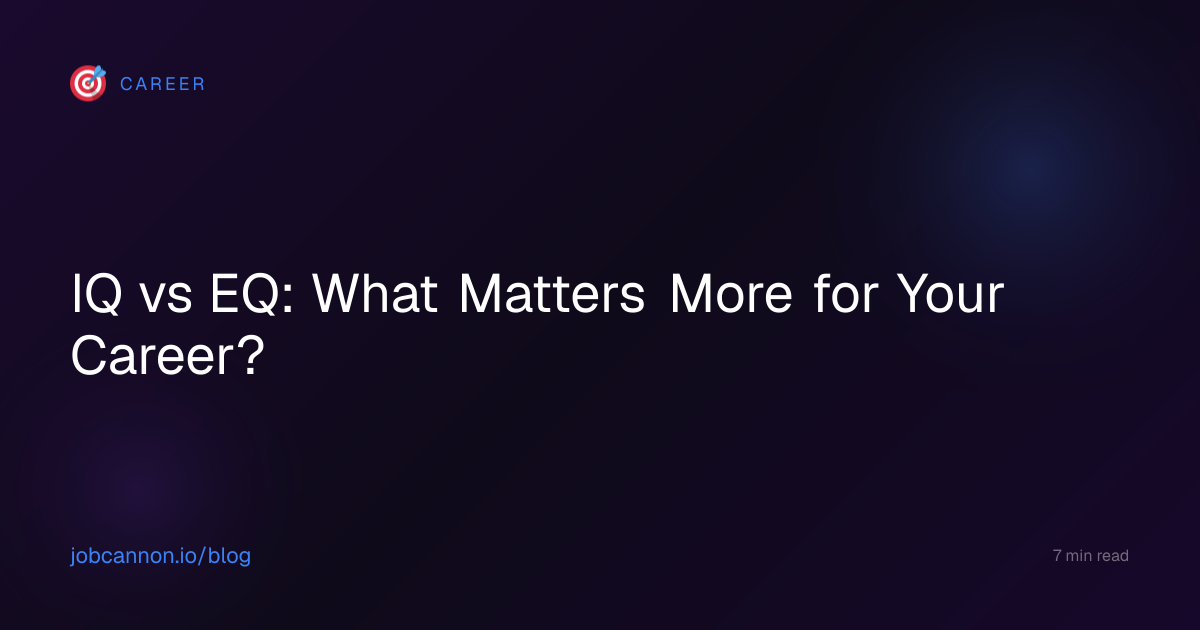 Take both the IQ test and the EQ assessment on JobCannon. Compare your cognitive subscale breakdown (numerical, verbal, logical, pattern) with your emotional intelligence dimensions (self-awareness, self-regulation, empathy, social skills). The combination reveals your optimal career zone more accurately than either score alone. Your Career DNA profile integrates both, giving you a cognitive-emotional map that no single test provides.