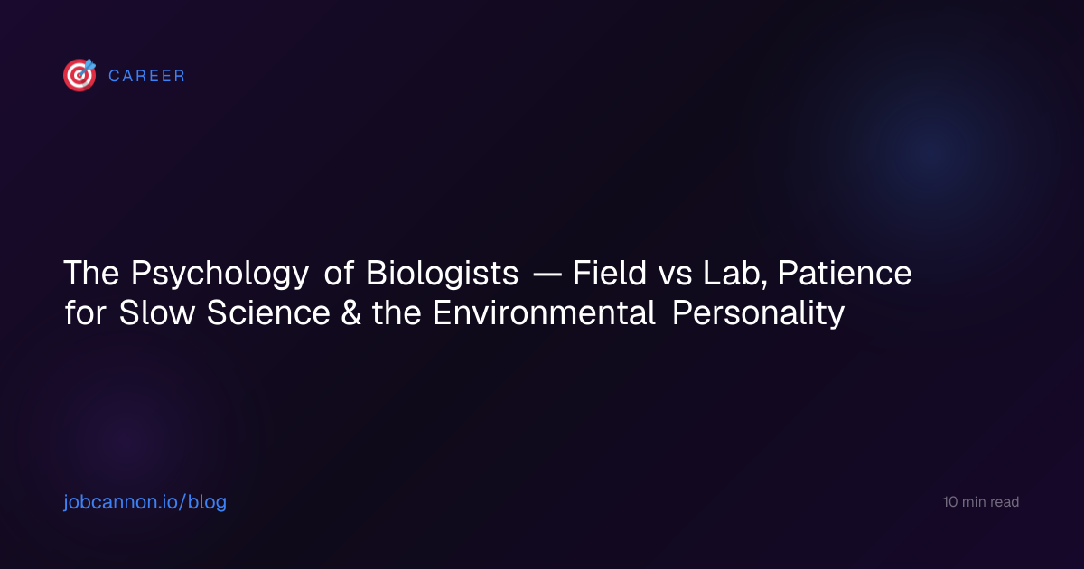 Field biologists and lab biologists choose their paths long before they're consciously aware of the decision. The personality profiles are distinct enough that graduate advisors can often predict which path a student will take within weeks of meeting them.