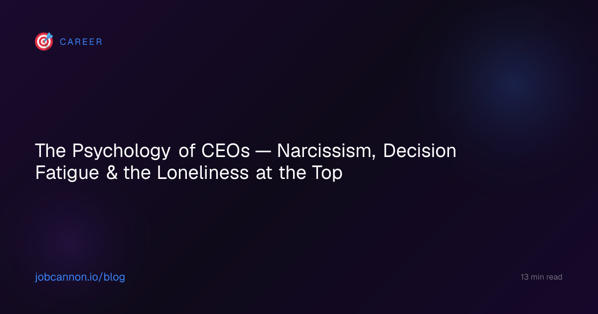 CEOs score 0.5-0.8 standard deviations higher on narcissism scales than the general population. This finding, documented by Chatterjee and Hambrick (2007), provokes immediate reactions — but the data is more nuanced than the headline. CEO narcissism is subclinical: elevated confidence, comfort with self-promotion, conviction in personal vision, and willingness to make bold strategic moves. It is not pathological narcissism: exploitation, lack of empathy, interpersonal manipulation.