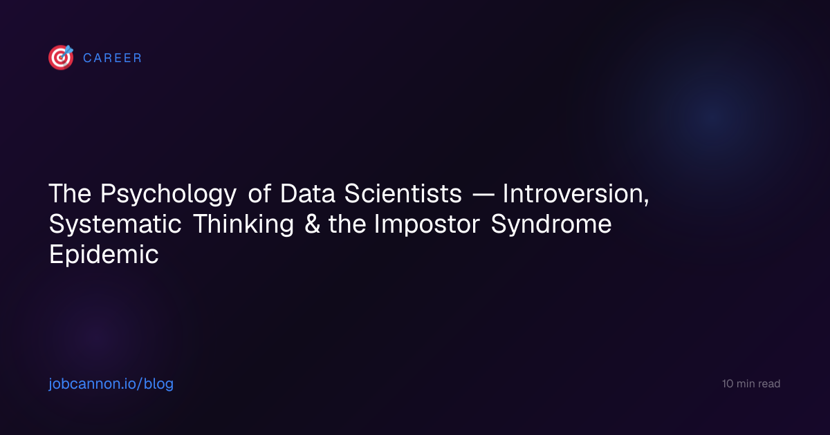 - MBTI Assessment — identify whether you're an INTJ (systems builder) or INTP (pattern explorer) — it changes your optimal role within data science