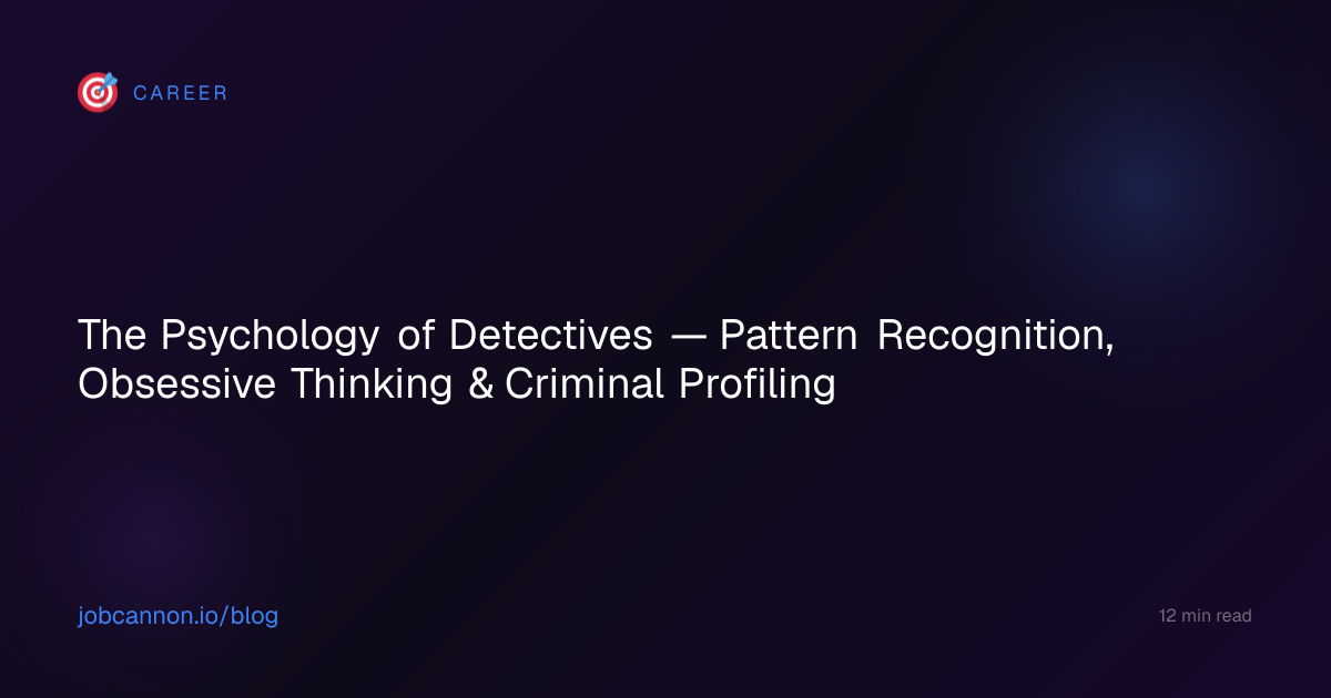 Detectives don't just solve crimes — they think in a fundamentally different way from patrol officers, lawyers, or forensic scientists. The detective mind is built on pattern recognition: the ability to see connections between seemingly unrelated facts, hold multiple hypotheses simultaneously, and tolerate ambiguity long enough for the truth to emerge. Research using the Big Five personality model shows detectives scoring high on Openness (76th percentile) and Conscientiousness (84th percentile) — a combination that produces methodical curiosity, the engine of investigation.