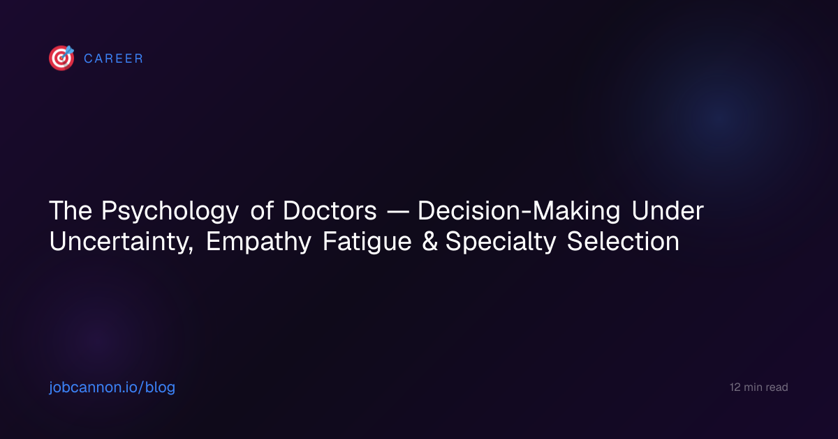 Medicine attracts a specific psychological profile — and then reshapes it through a decade of training that is as much an endurance test as an education. Research using the Big Five personality model shows that physicians score in the 92nd percentile for Conscientiousness, the highest of any profession consistently measured. This isn't just "being organized" — it's a deep need for thoroughness, accuracy, and adherence to standards that becomes inseparable from identity.