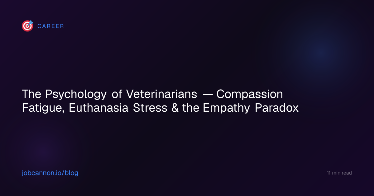 Veterinary medicine is the only profession where practitioners regularly perform deliberate death as a routine clinical duty. Veterinarians euthanize an average of 5-7 animals per month — approximately 2,000 over a 30-year career. This single fact shapes everything about the profession's psychology: who enters it, who survives it, and who eventually breaks under its unique emotional demands.